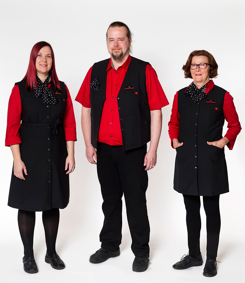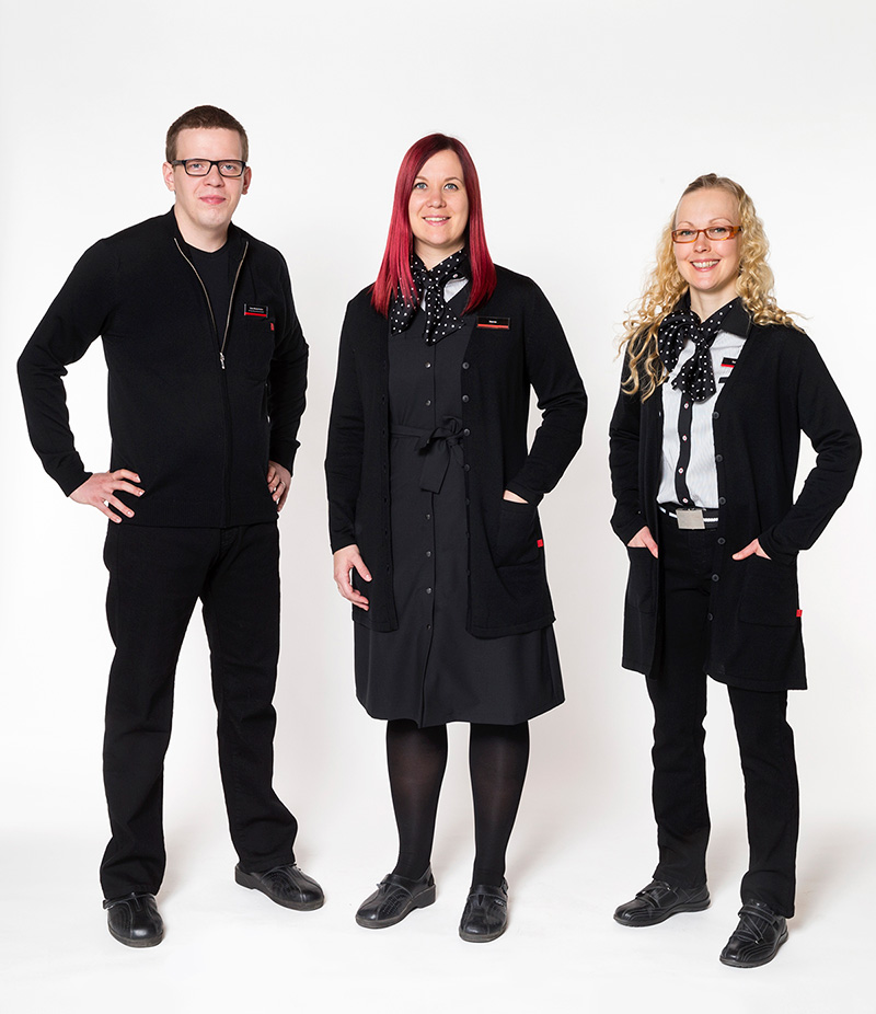 ”Uudet työasut ovat ergonomisesti mahdollisimman miellyttäviä käytössä. Niissä on raikas ja dynaaminen ilme, joka sopii tähän päivään”, kertoo vaatteiden suunnittelusta vastannut Ritva-Liisa Pohjalainen.